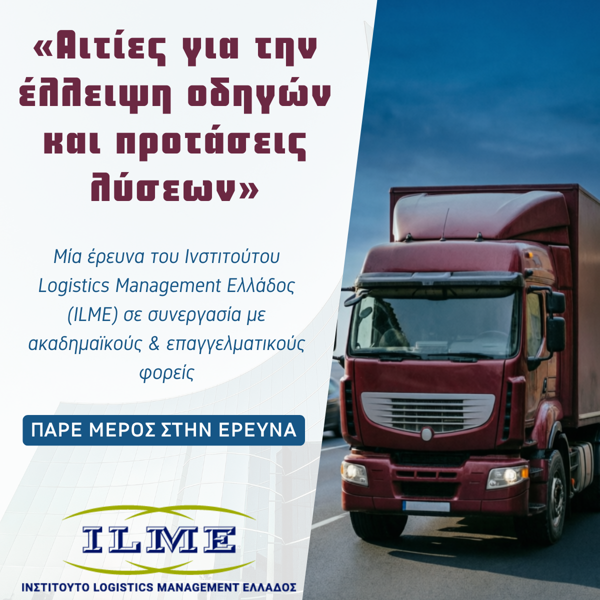 Αξιότιμα μέλη και συνεργάτες, Η έλλειψη επαγγελματιών οδηγών αποτελεί πλέον το μεγαλύτερο εμπόδιο στην εφοδιαστική αλυσίδα. Το ILME, σε...